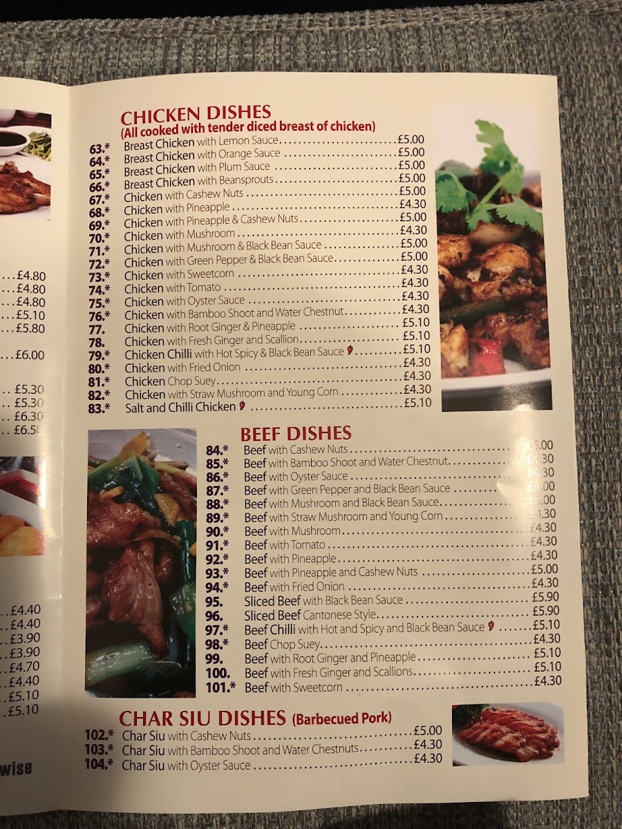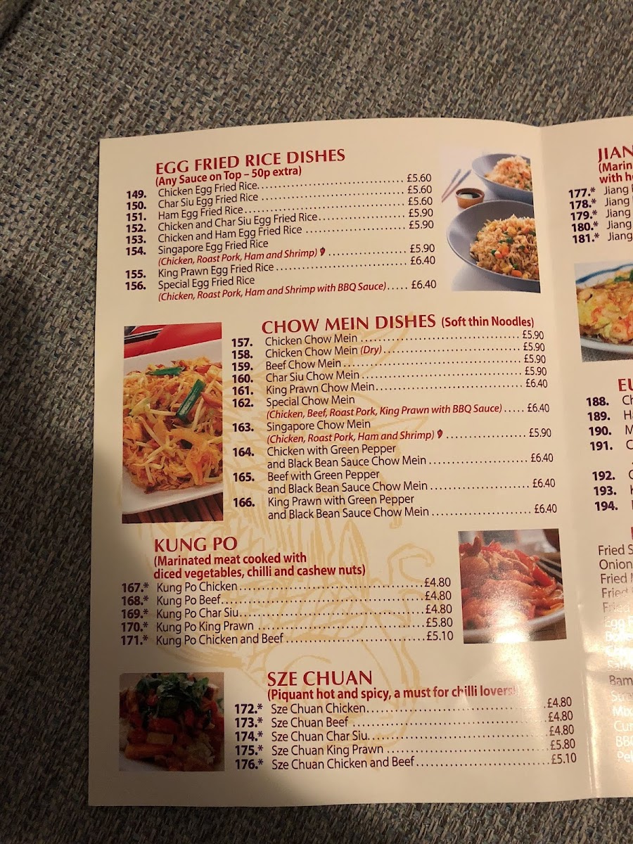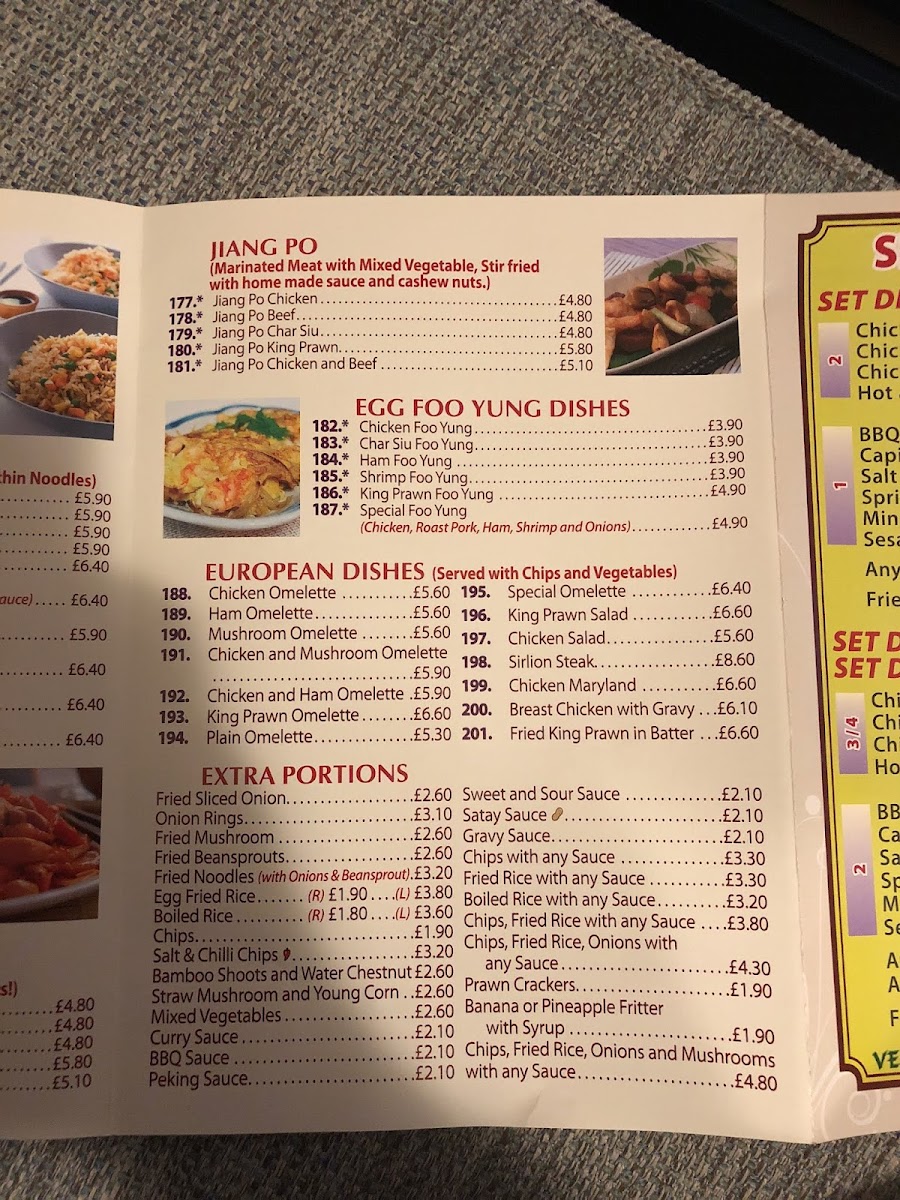 The menu at Jasmine Chinese Takeaway offers an extensive variety of delicious options suitable for different tastes and preferences. The set dinners cater to groups with choices like the Set Dinner For 2 Persons, Set Dinner For 3 Persons, and Set Dinner For 4 Persons, perfect for sharing. Appetizers range from the crispy Spring Rolls (2) and Mini Vegetable Spring Rolls (10) to the savory Capital Spare Ribs and Salt & Pepper Ribs. For satay lovers, the restaurant offers both skewered and non-skewered options, including Chicken Satay, Beef Satay, and King Prawns Satay On Skewers. The Sweet & Sour dishes, such as Sweet & Sour Chicken and Sweet & Sour King Prawns Cantonese Style, are also standout choices. Curry enthusiasts can indulge in hearty Beef Curry or Mixed Vegetable Curry, while chicken fans will appreciate options like Breast Chicken With Lemon Sauce and Chicken With Cashew Nuts. For beef lovers, there’s the Beef With Cashew Nuts and Beef With Oyster Sauce. The King Prawn Dishes, such as King Prawns With Sweetcorn and King Prawns With Mushrooms, offer flavorful alternatives. The Duckling Dishes provide an extra touch of luxury with choices like Roast Duck In Plum Sauce and Roast Duck Cantonese Style. Additionally, the menu features comfort classics like Chicken Omelette and Char Siu Fried Rice, along with hearty soups like Chicken & Noodles Soup and Hot & Sour Soup. For something special, the Peking Aromatic Duck and Kung Po dishes, like Kung Po Chicken and Kung Po King Prawns, deliver bold and spicy flavors. With extra portions like Fried Mushrooms and refreshing drinks like Coca Cola Original and Diet Irn Bru, Jasmine Chinese Takeaway provides an all-encompassing dining experience sure to satisfy a variety of appetites.